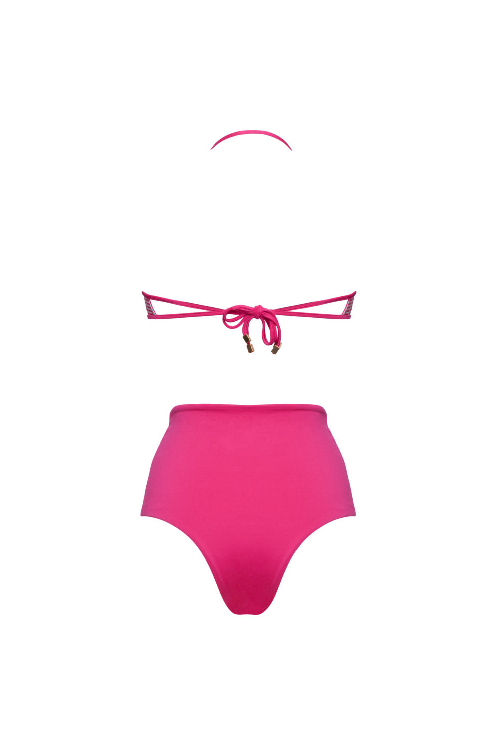Bikini in morbida lycra e inserto in tessuto stampato con motivo originale ispirato alla tradizione sarda.